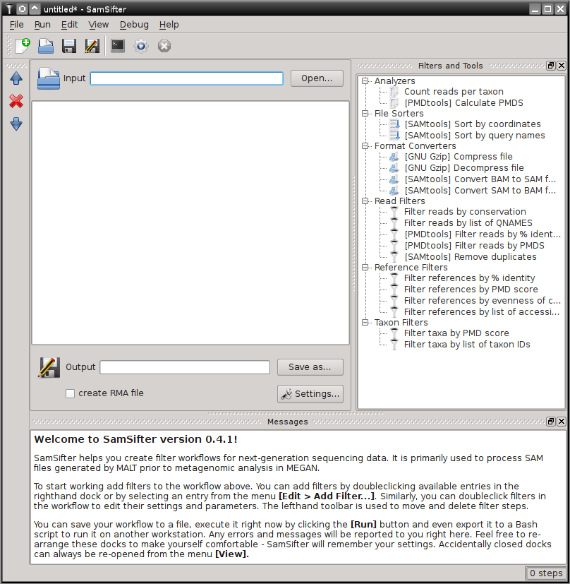 SamSifter helps you create filter workflows for next-generation sequencing data. It is primarily used to process SAM files generated by MALT prior to metagenomic analysis in MEGAN.